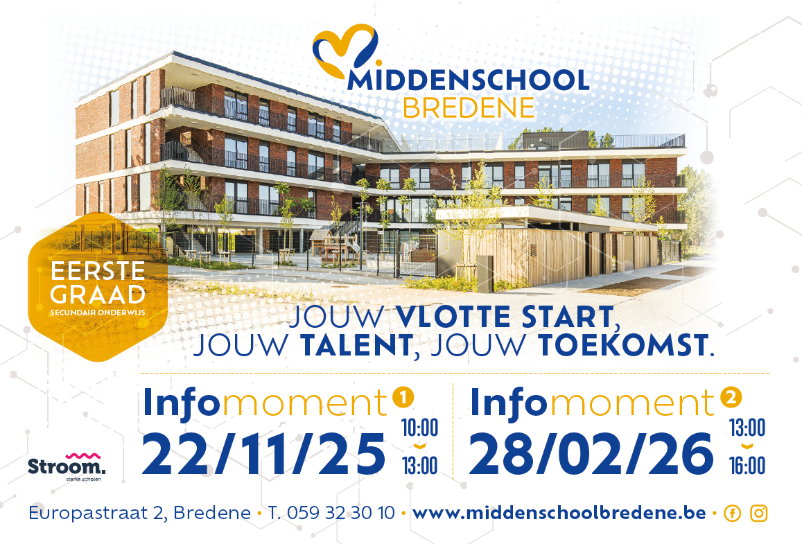 Let op: uitzonderlijk zal op het infomoment van 22 november 2025 geen bar worden voorzien door de school zelf, aangezien dit samenvalt met een actie voor de Warmste Week van het lager onderwijs van de Europaschool. We nodigen bezoekers van harte uit om deze actie te steunen.